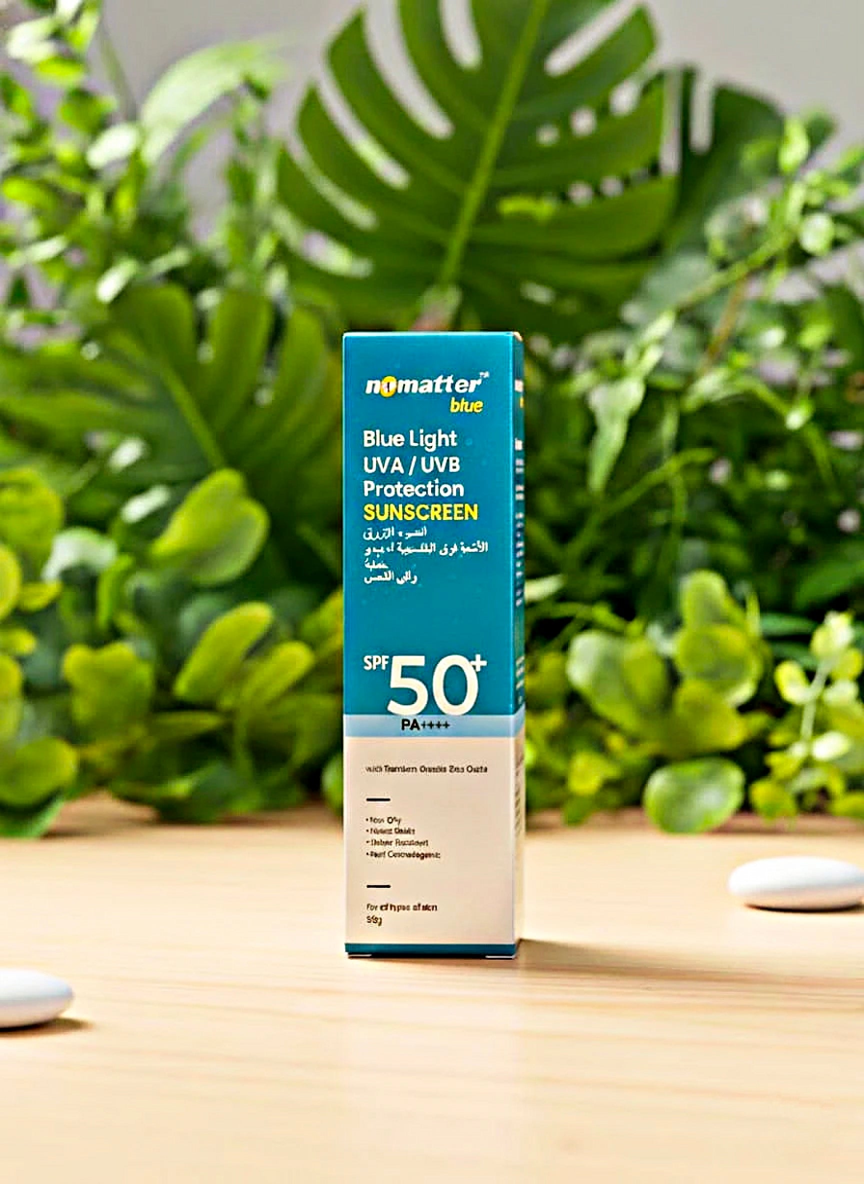 “Nomatter Blue Sunscreen is the first sunscreen I’ve actually loved using — no white cast, no oiliness, just a matte, clean look all day.”